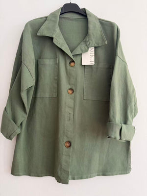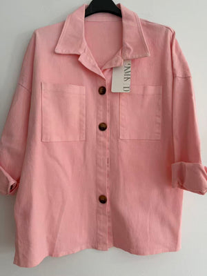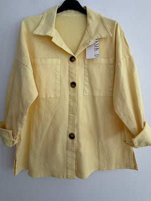 Fabricada en una mezcla resistente de 95% algodón y 5% elastano, su tejido imita el look del denim ligero, ofreciendo comodidad, suavidad y un toque elástico que la hace fácil de llevar durante todo el día. Además, incorpora dos bolsillos en el pecho, que añaden funcionalidad y un aire casual chic.