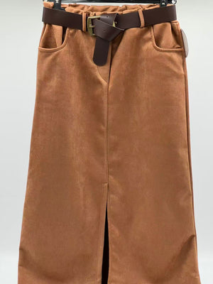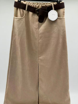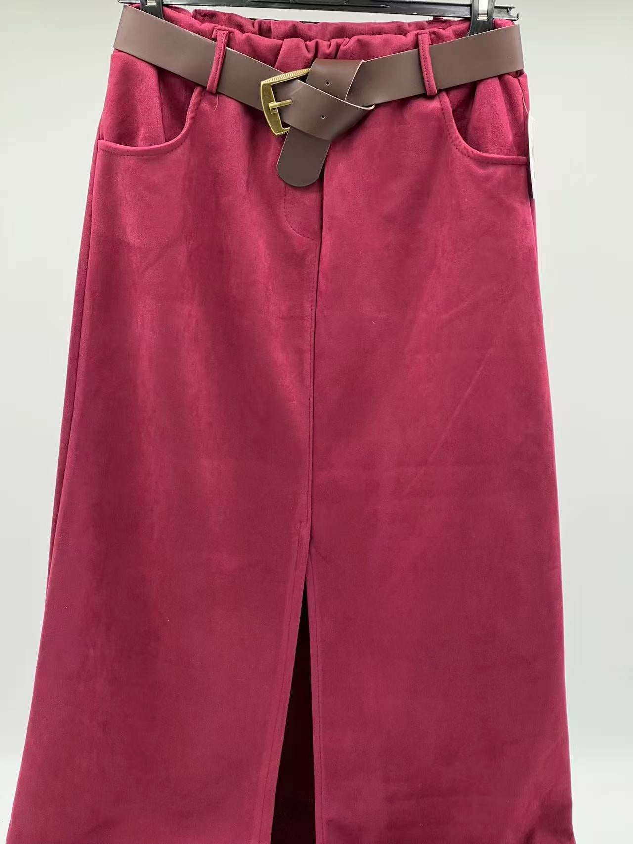 Añade la Falda antelina Valentina a tu armario y disfruta de una prenda que refleja la esencia de la moda femenina actual: práctica, elegante y con estilo propio.