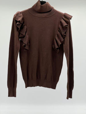 Su diseño de manga larga y cuello alto aporta abrigo sin resultar pesado, mientras que los volantes añaden un toque femenino y sofisticado que eleva cualquier conjunto. El tejido es ligero, suave y agradable al tacto, proporcionando calidez sin perder comodidad, ideal para un uso prolongado.