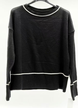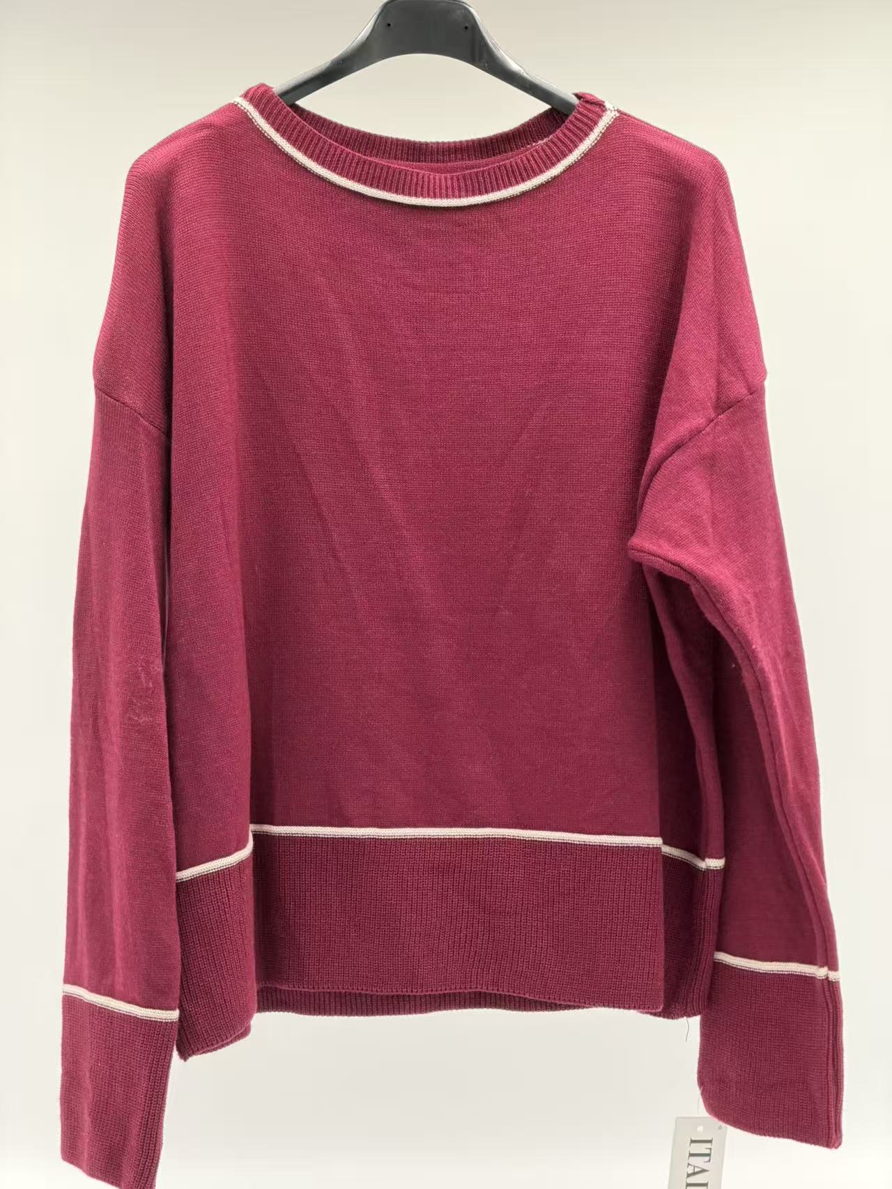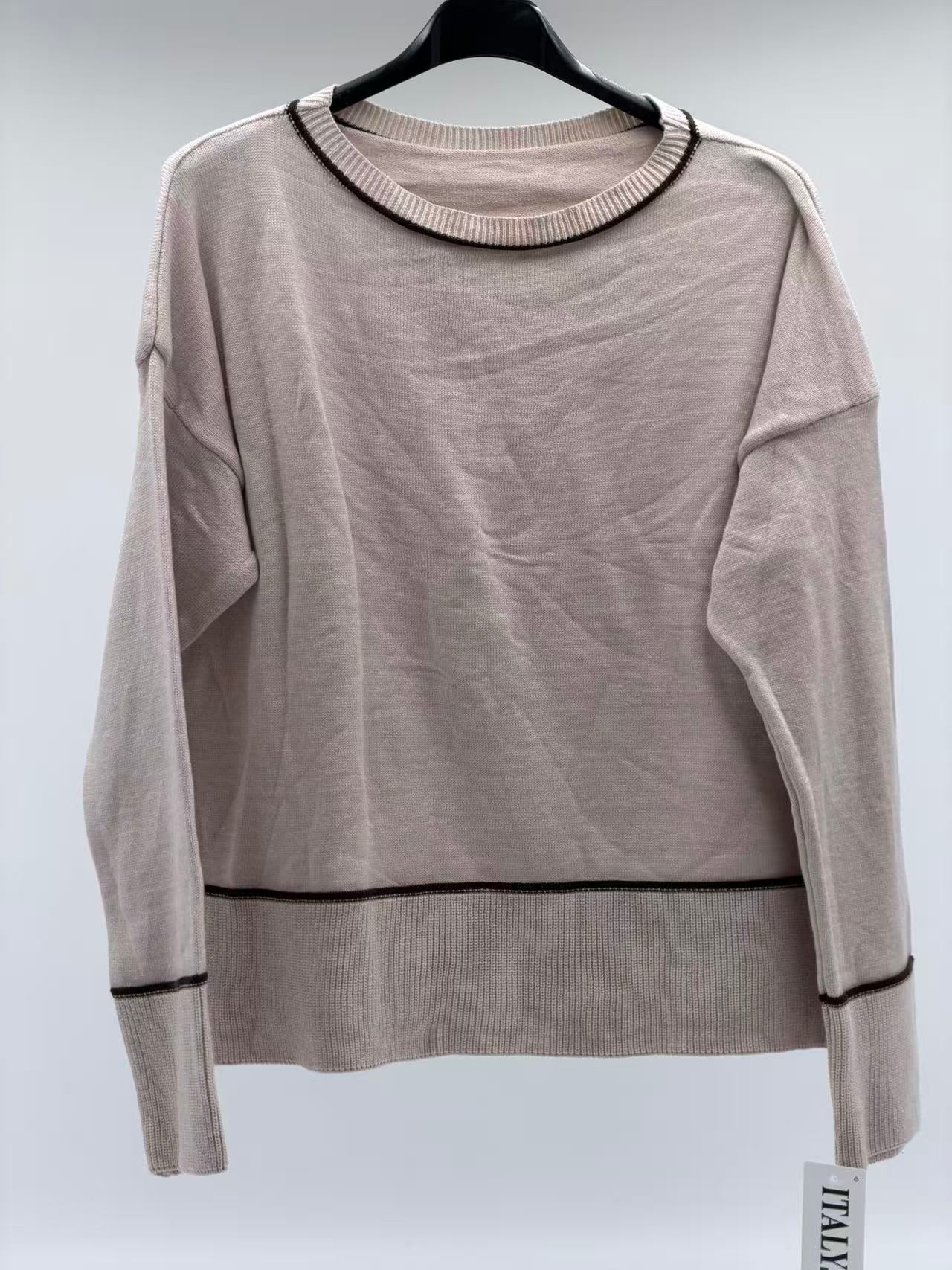 El diseño incorpora detalles a rayas en el cuello, las mangas y el bajo, lo que añade un toque de estilo y profundidad visual sin perder su esencia minimalista y elegante. Su manga larga y su corte cómodo en talla única lo convierten en una opción versátil y fácil de combinar.