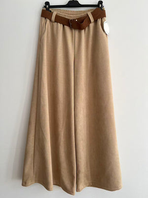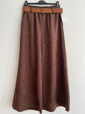 El Pantalón antelina ancho representa la esencia de la moda femenina actual: comodidad, estilo y elegancia en una sola prenda.